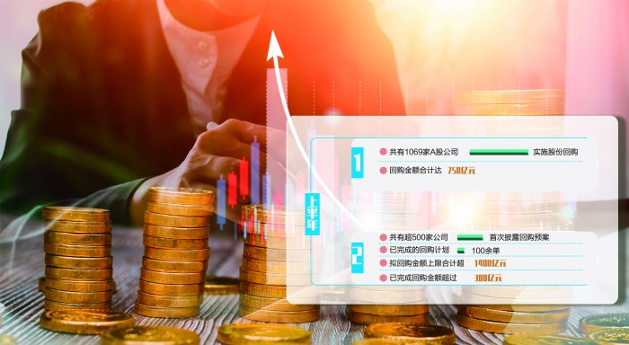 Wind数据显示,上半年共有1069家A股公司实施股份回购,回购金额合计达750亿元;共有超500家公司首次披露回购预案,拟回购金额上限合计超1400亿元,其中已完成回购金额超过300亿元,已完成的回购计划100余单。